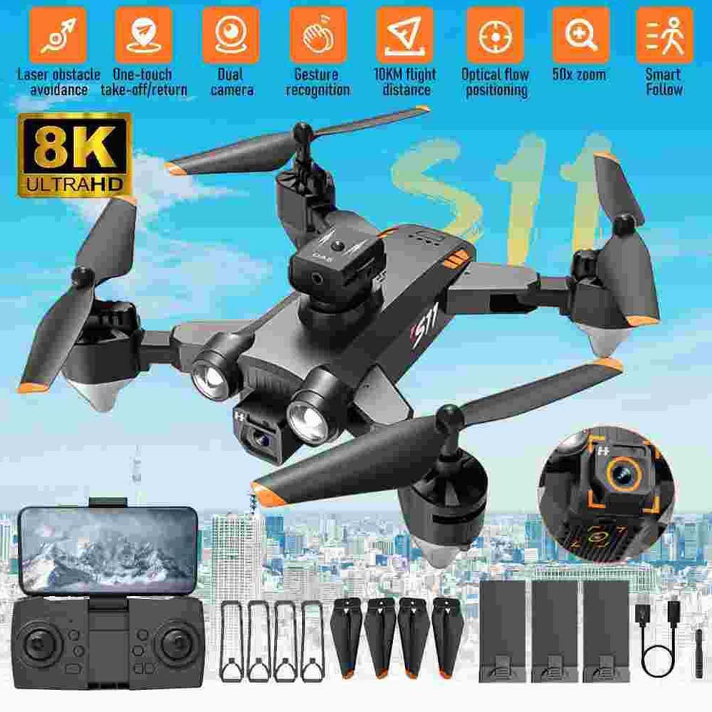 2023 RC无人机8K高清广角摄像头WIFI FPV GPS无人机双摄像头四轴飞行器,长待机GPS直播视频,带广角玩具四轴飞行器可折叠自拍